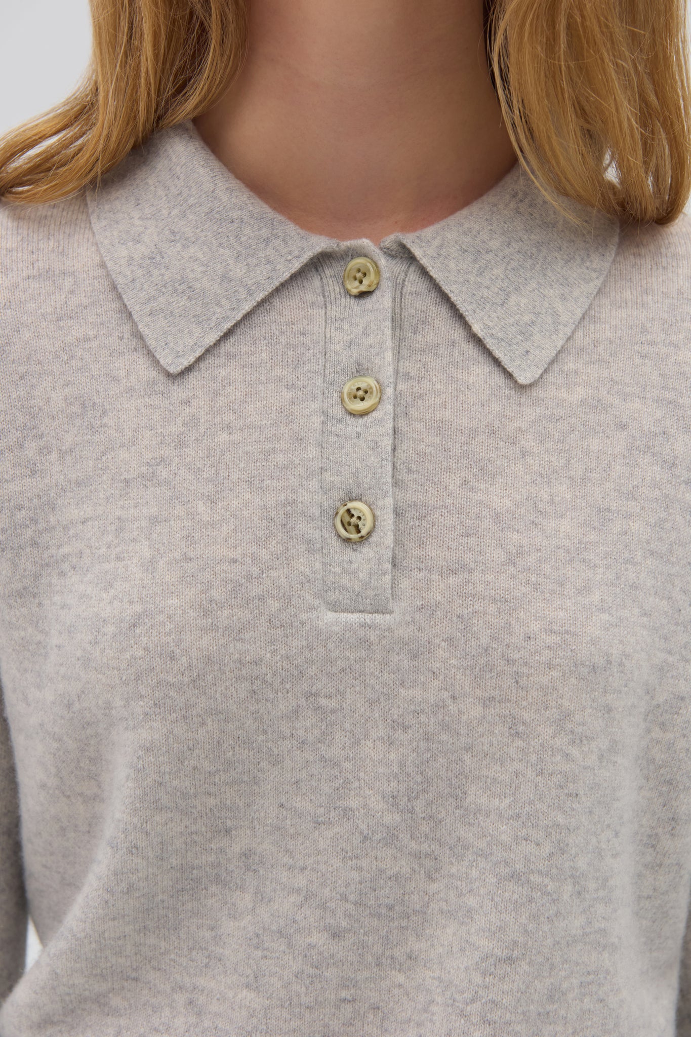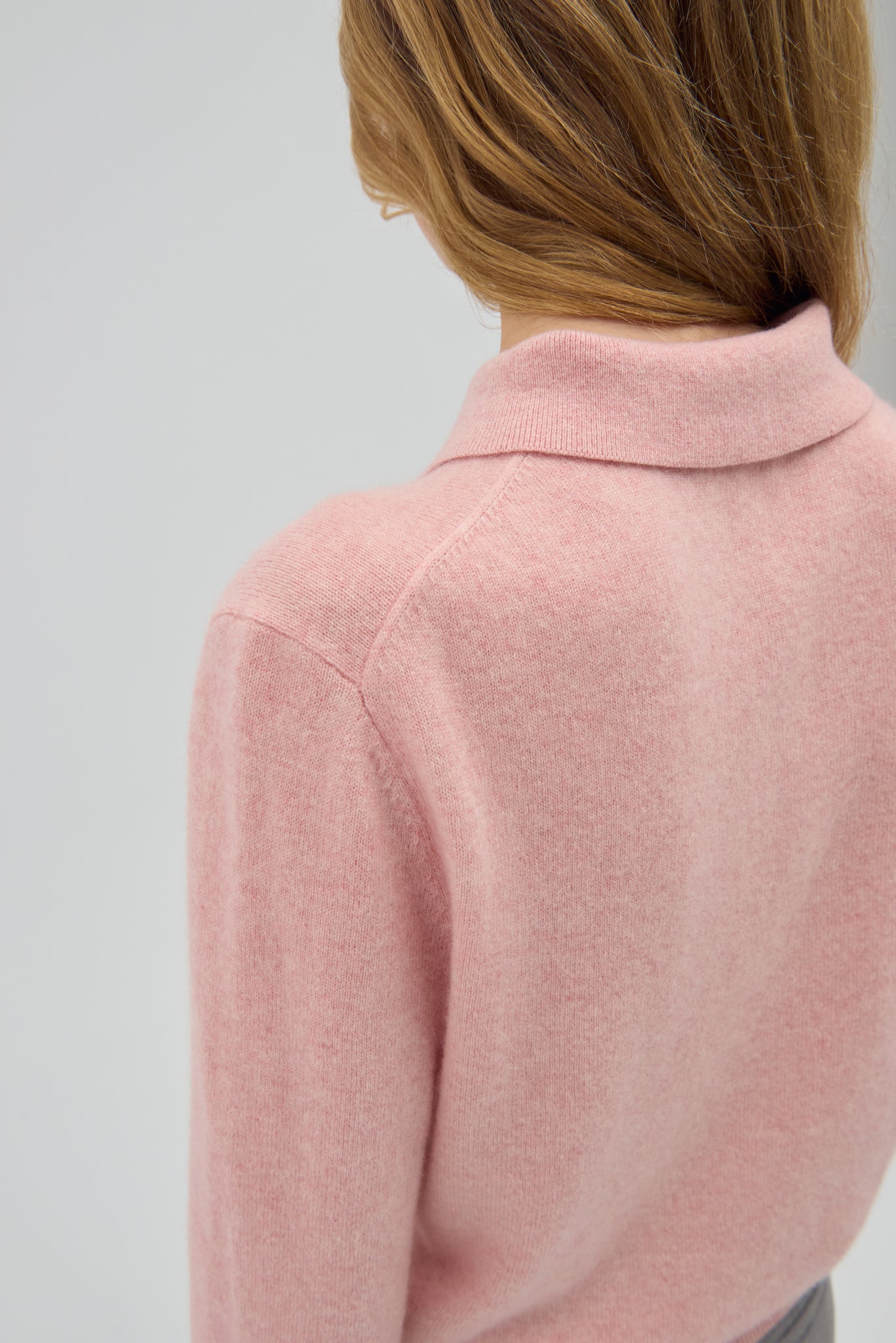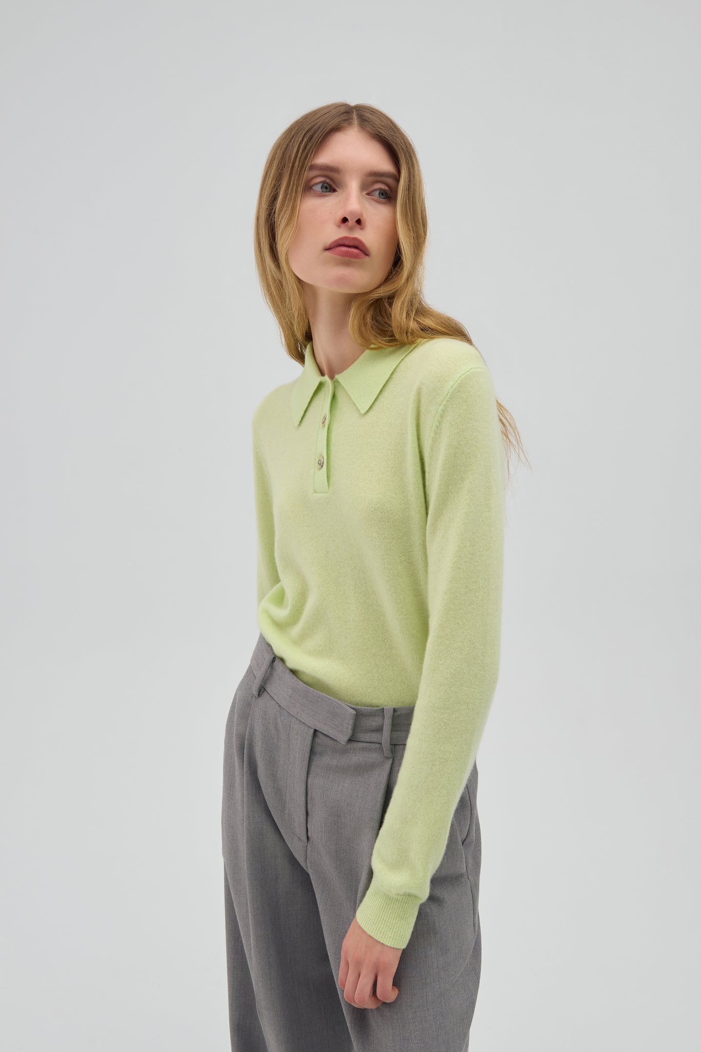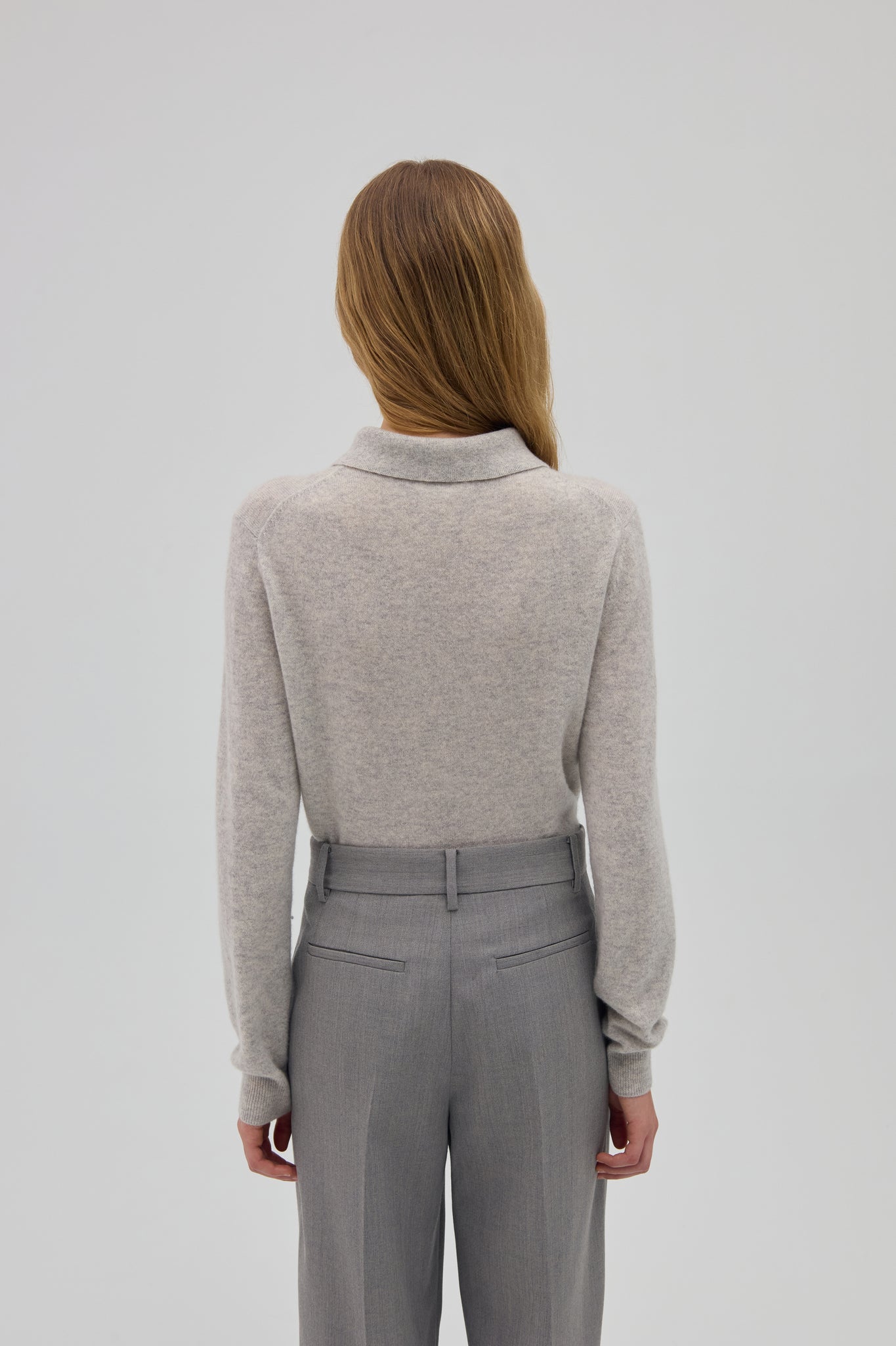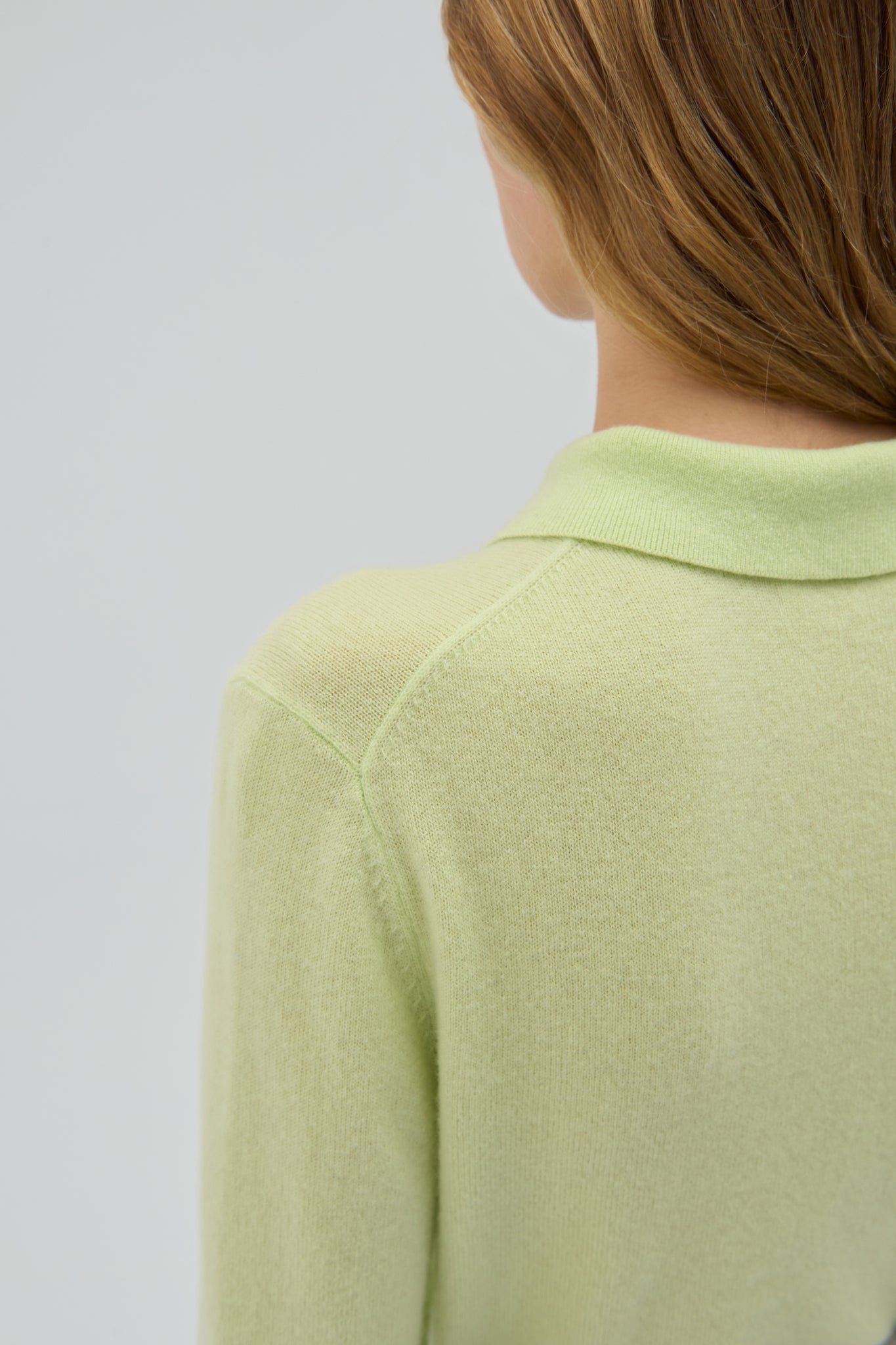 A midweight sweater made from 100% Cashmere for comfort and versatility. Features a classic collar and three-button placket, with rimmed buttons branded with an etched logo. Rib finishes at hem and cuffs.