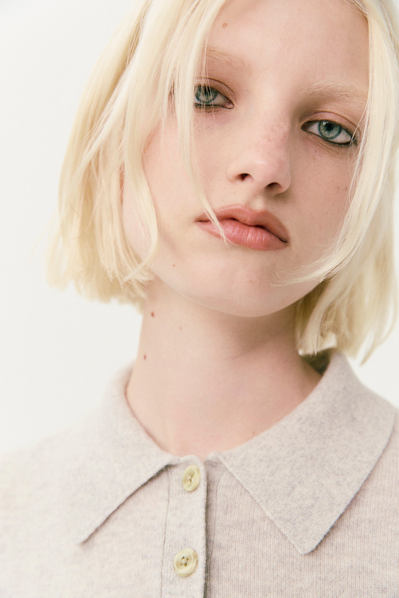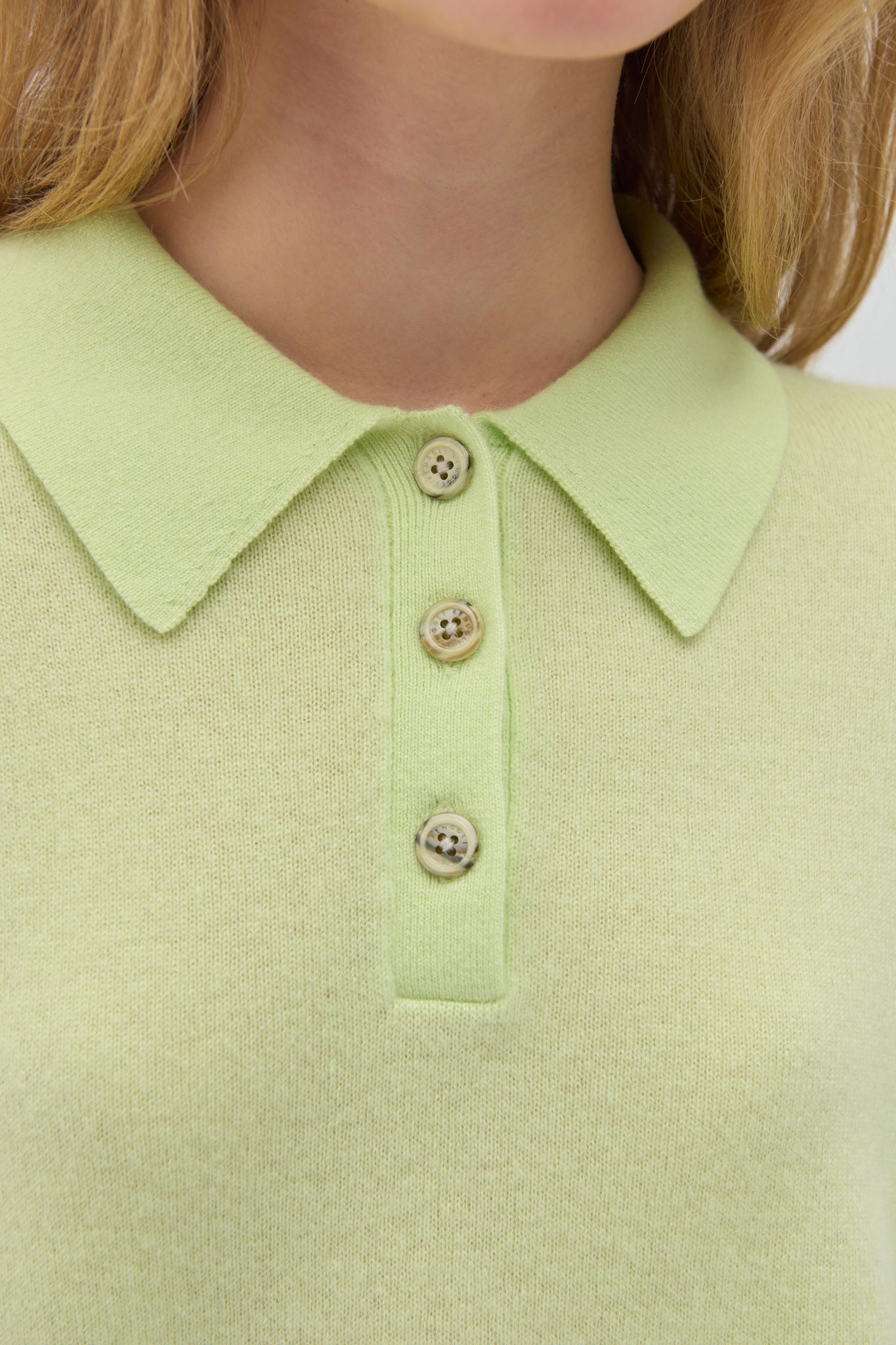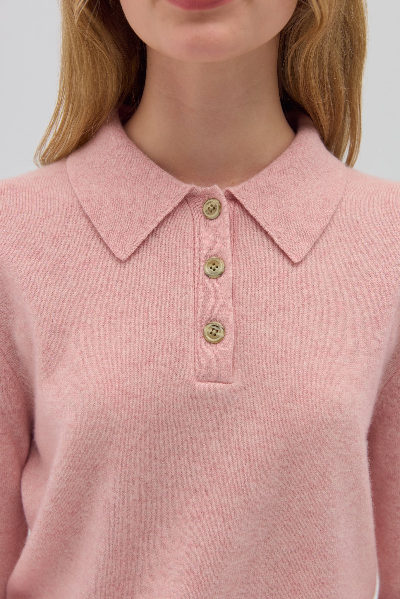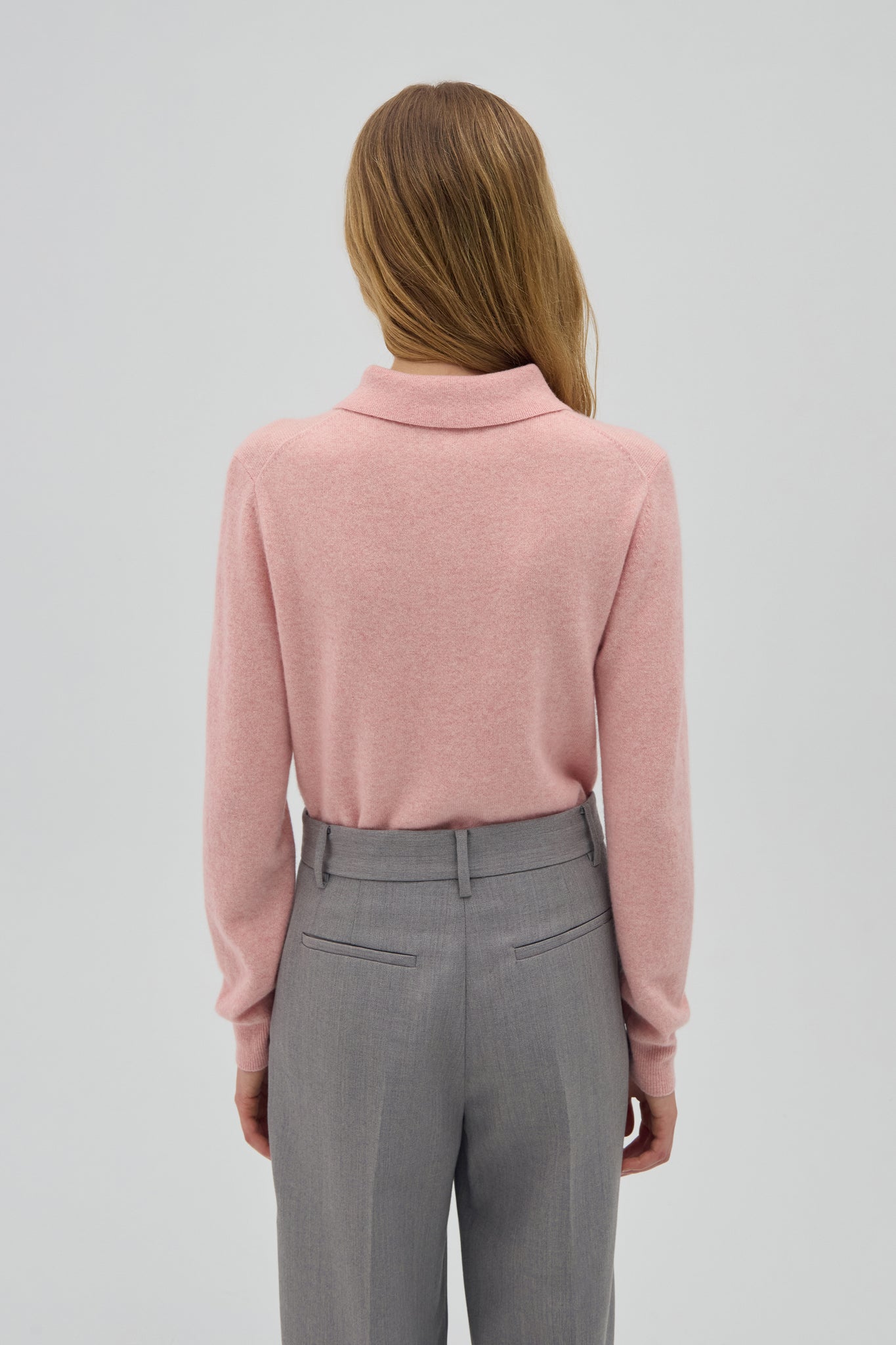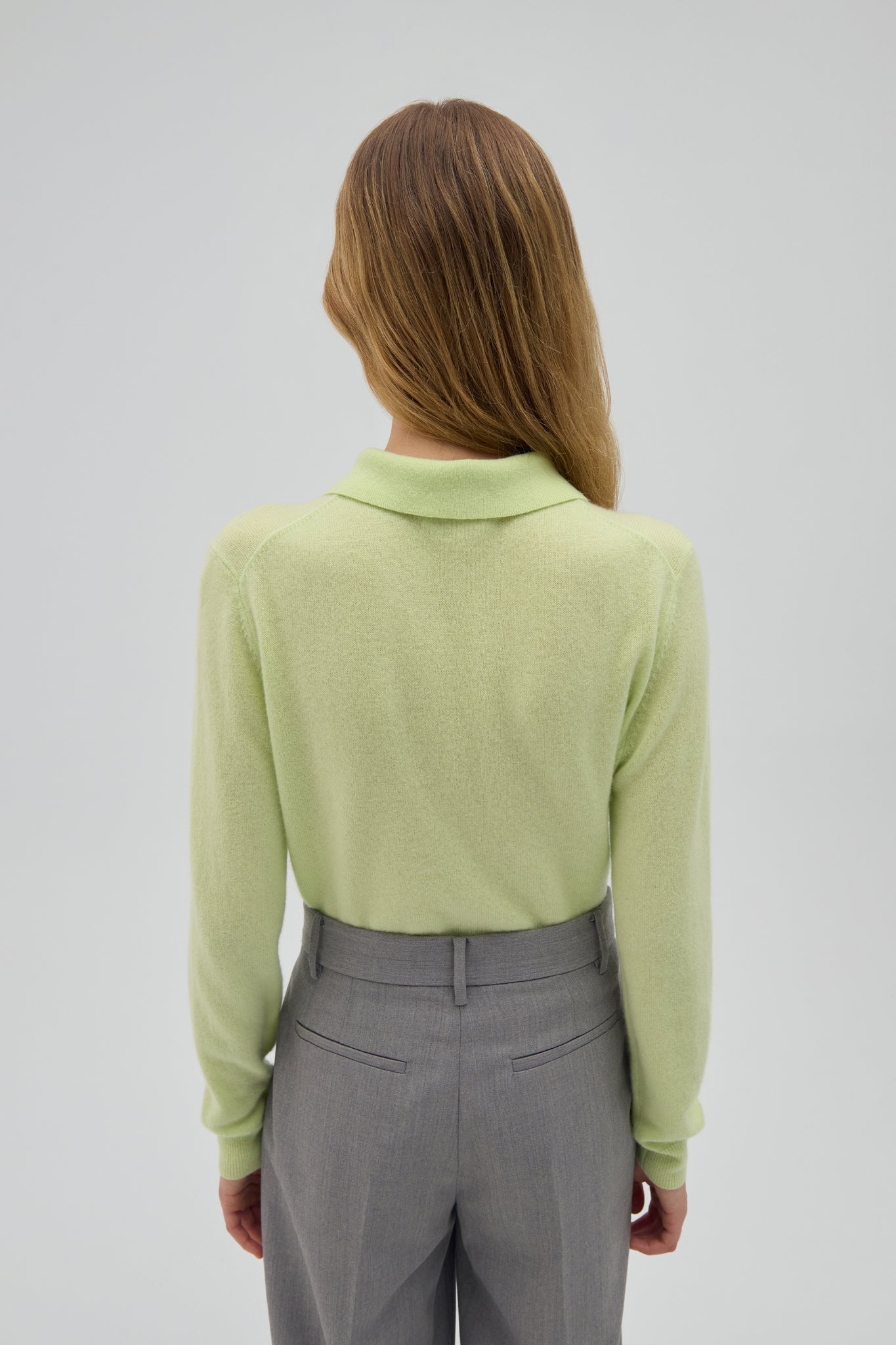 A midweight sweater made from 100% Cashmere for comfort and versatility. Features a classic collar and three-button placket, with rimmed buttons branded with an etched logo. Rib finishes at hem and cuffs.