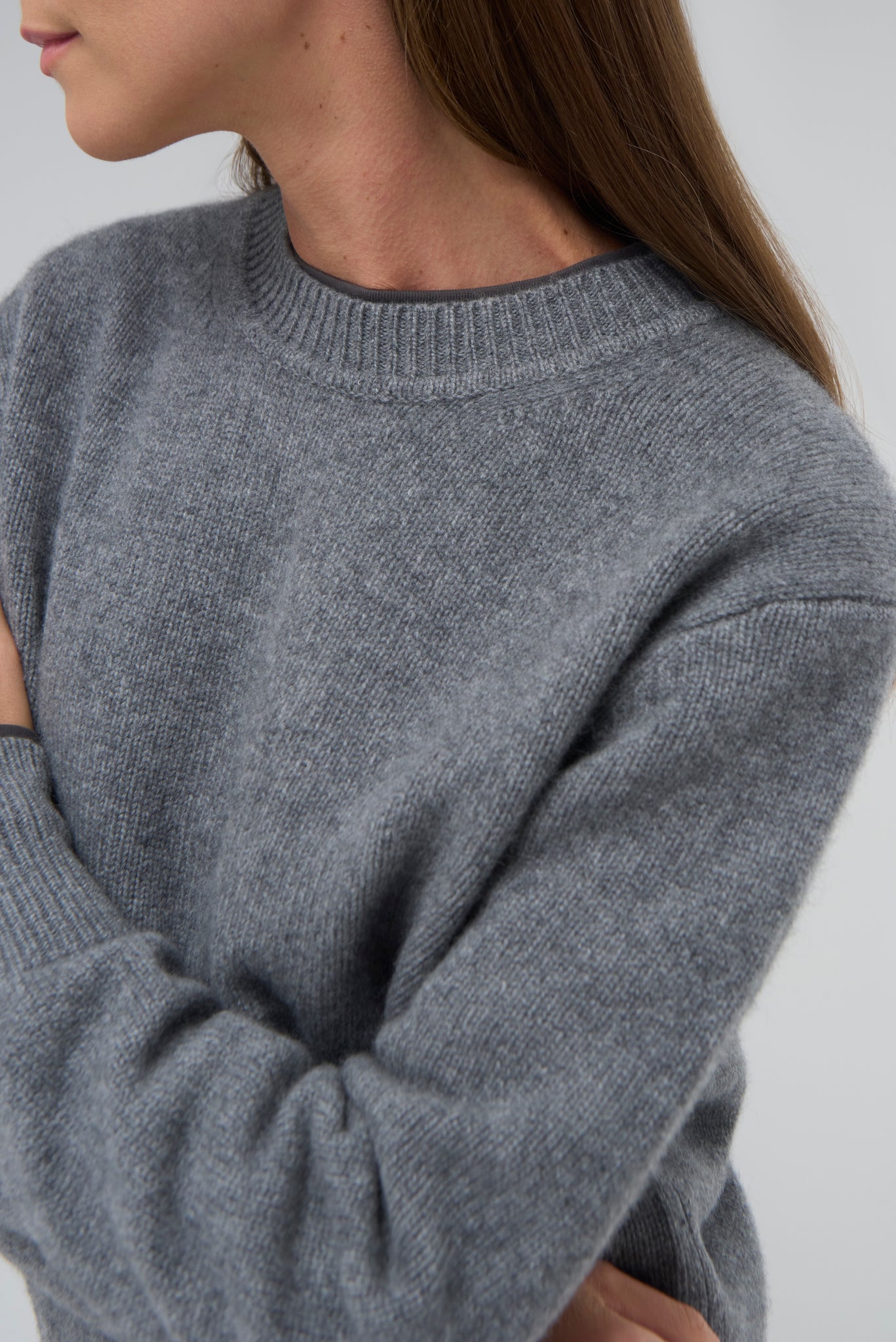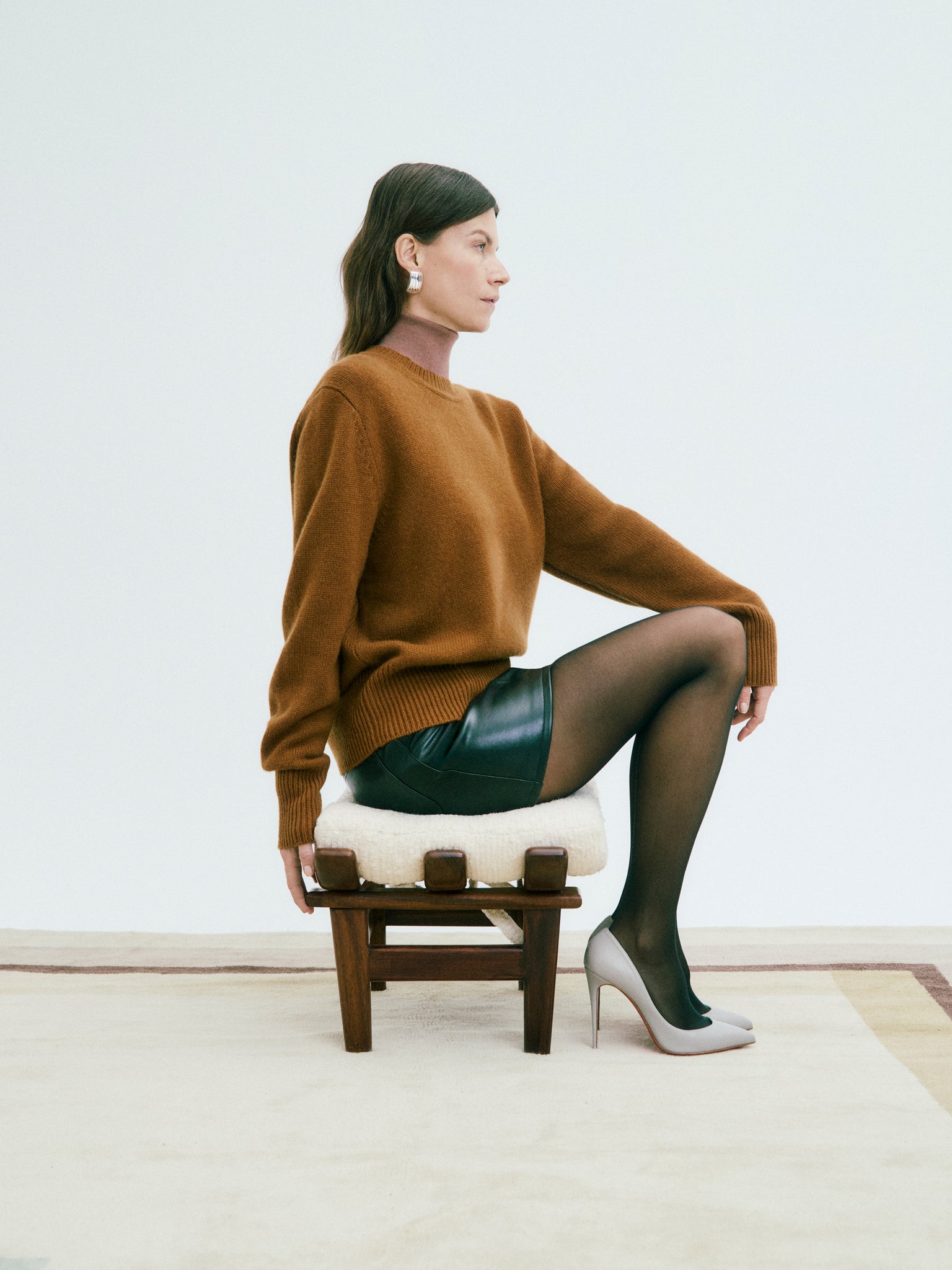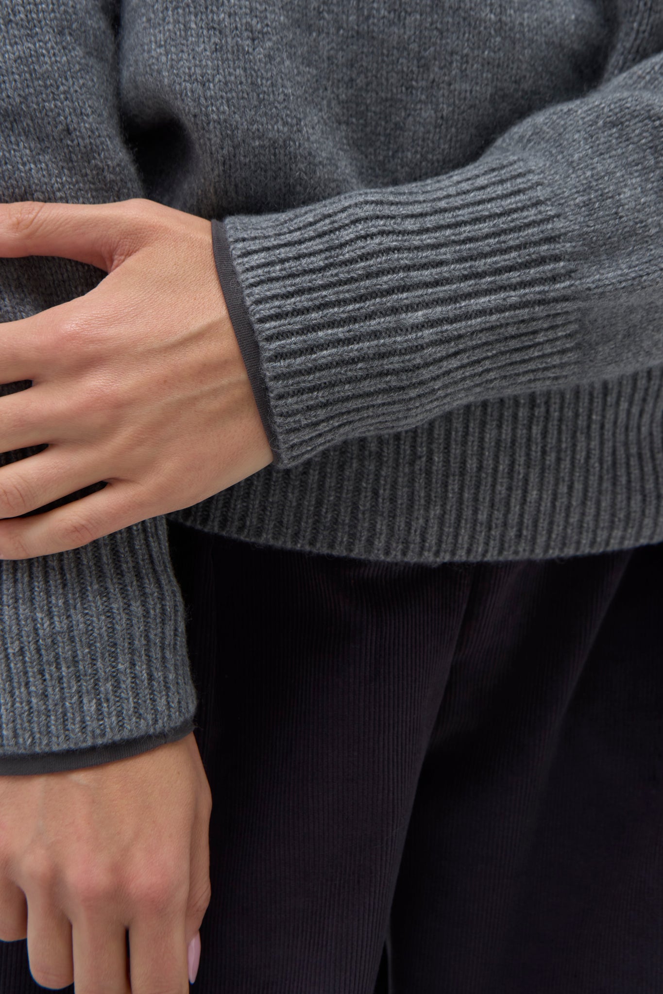Fit, Composition, Care:- Oversized fit.- Model: 5'10" wearing size S.- 100% Cashmere.- Hand wash or dry clean. Do not bleach. Dry flat. Do not tumble dry. Cool iron.