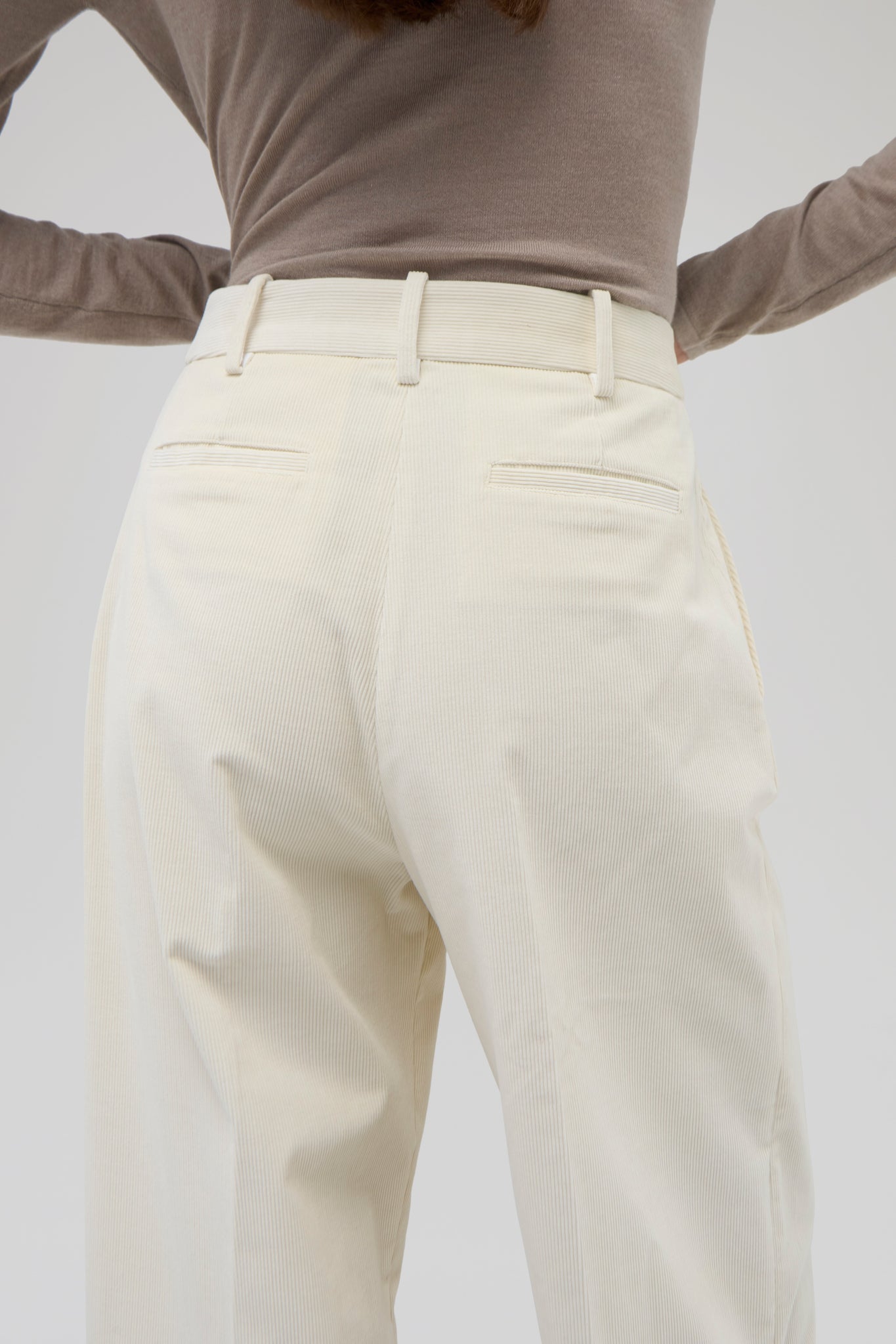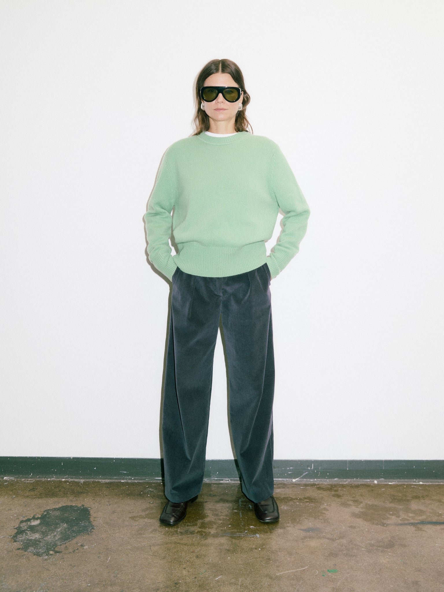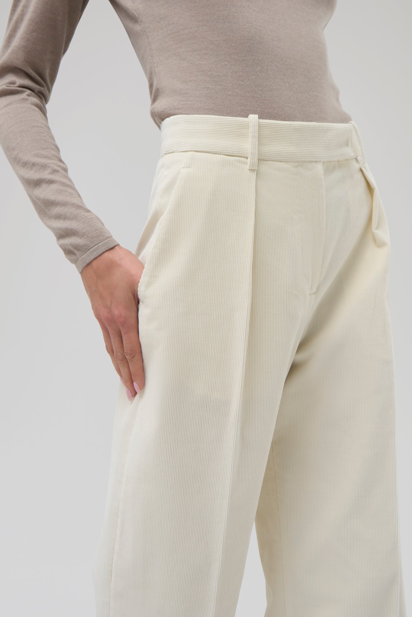 The Corduroy Trouser is a wide-leg pant made from soft fine-wale corduroy. Designed with a pleat front and crisp crease, it offers a relaxed shape that balances structure and ease. Polished enough to dress up, effortless enough for everyday.
