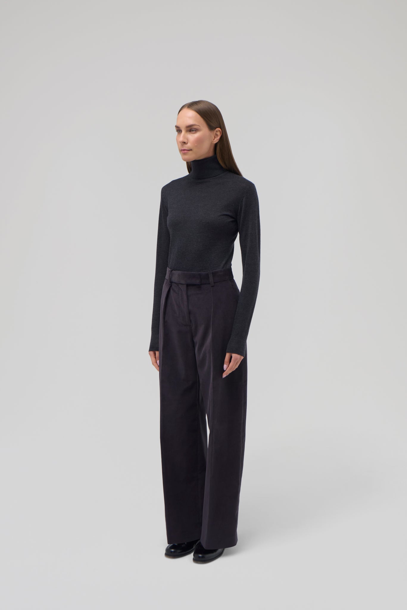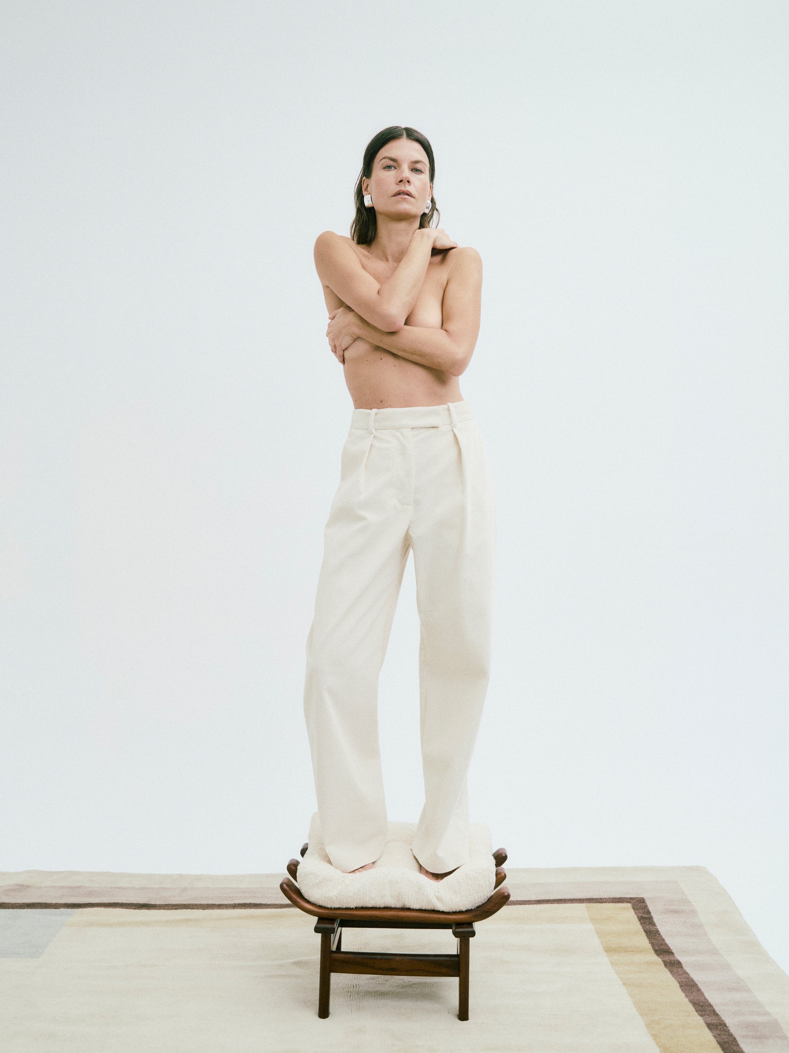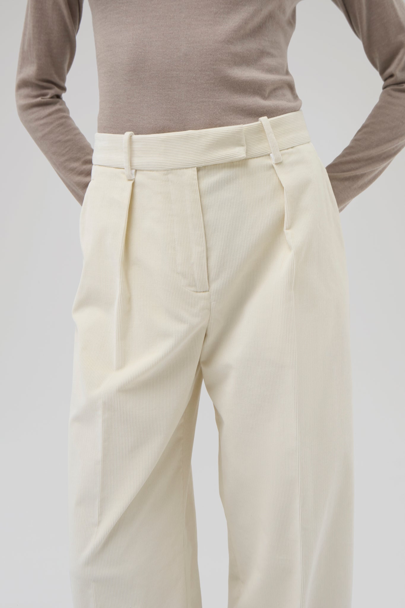 The Corduroy Trouser is a wide-leg pant made from soft fine-wale corduroy. Designed with a pleat front and crisp crease, it offers a relaxed shape that balances structure and ease. Polished enough to dress up, effortless enough for everyday.
