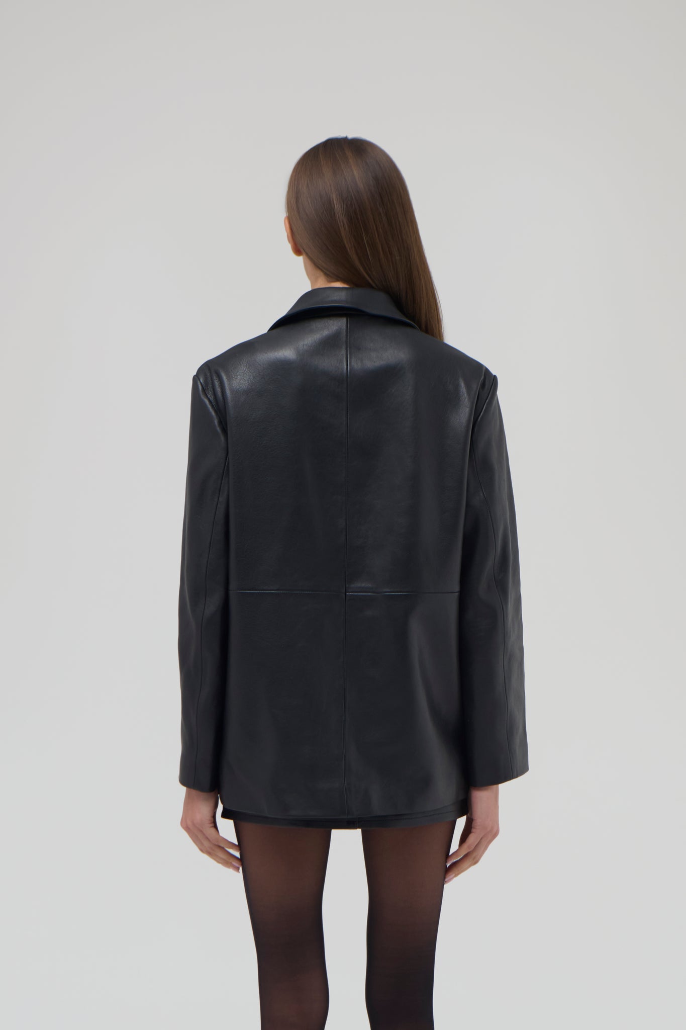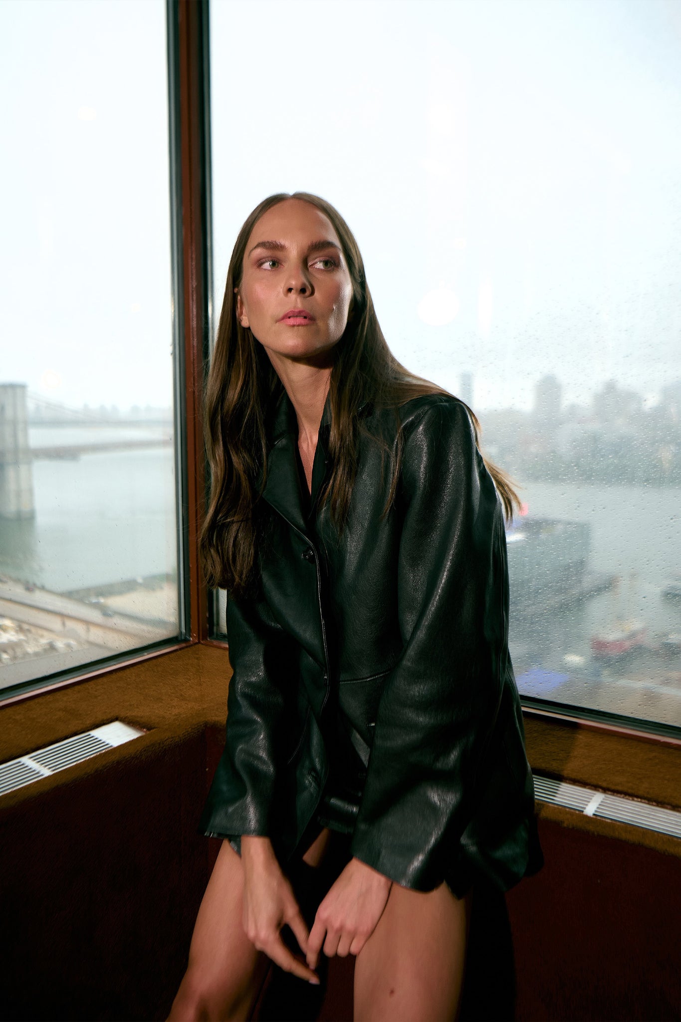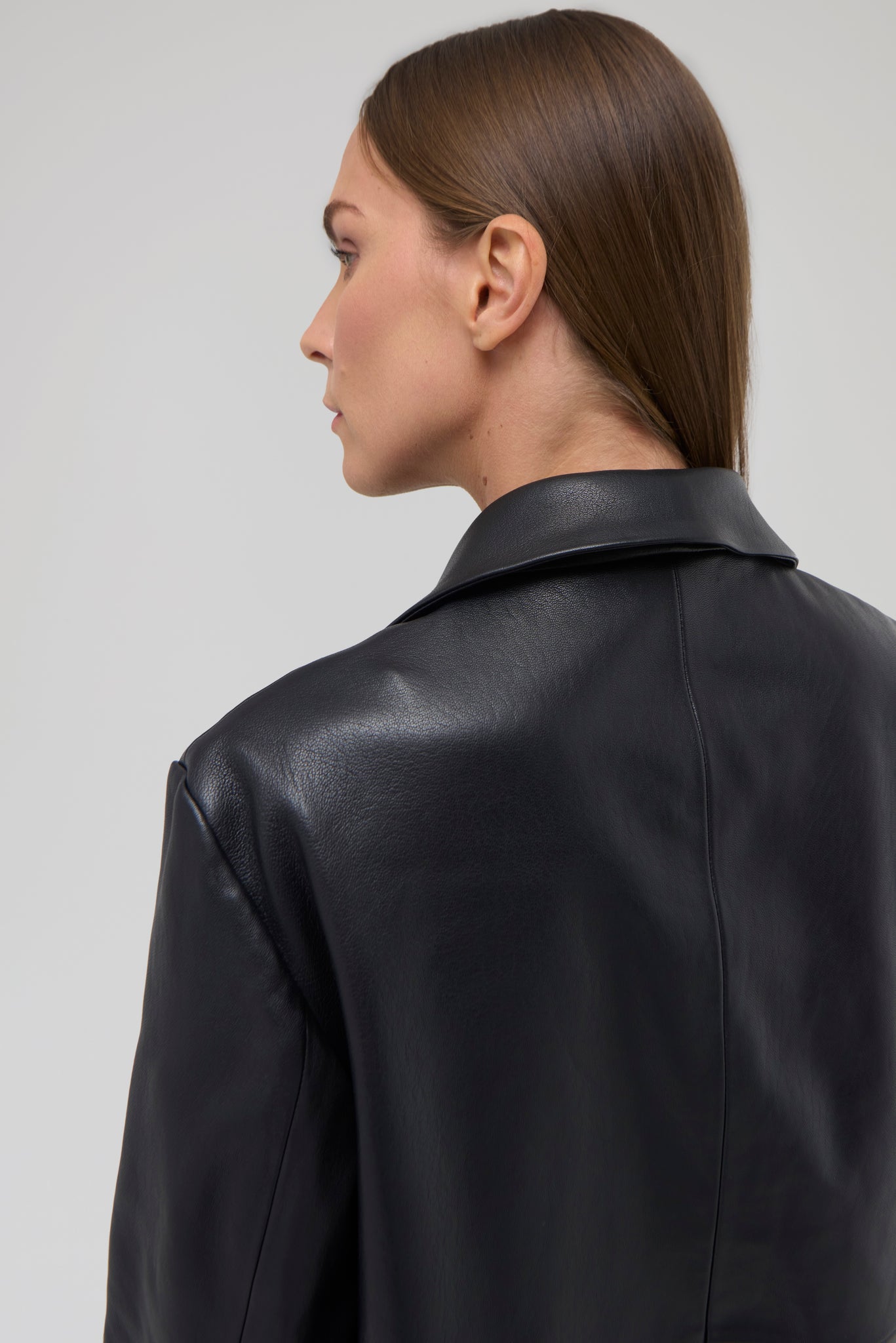 The Leather Blazer is cut from soft lamb leather with a classic, tailored shape. It features a notched collar, three-button closure, and clean front patch pockets. Fully lined for comfort and ease. Wear it layered over shirting or paired with the matching Leather Cargo Skirt.